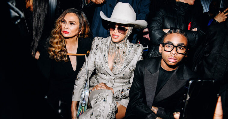 Not necessarily. It turned out she and her mother, Tina Knowles, were there to support her sister, Solange, and Solange’s son, Julez Smith Jr., who was making his catwalk debut in the show.